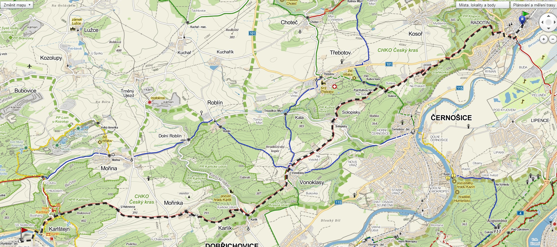 Trasa: Praha-Radotín - Karlštejn (17 km).