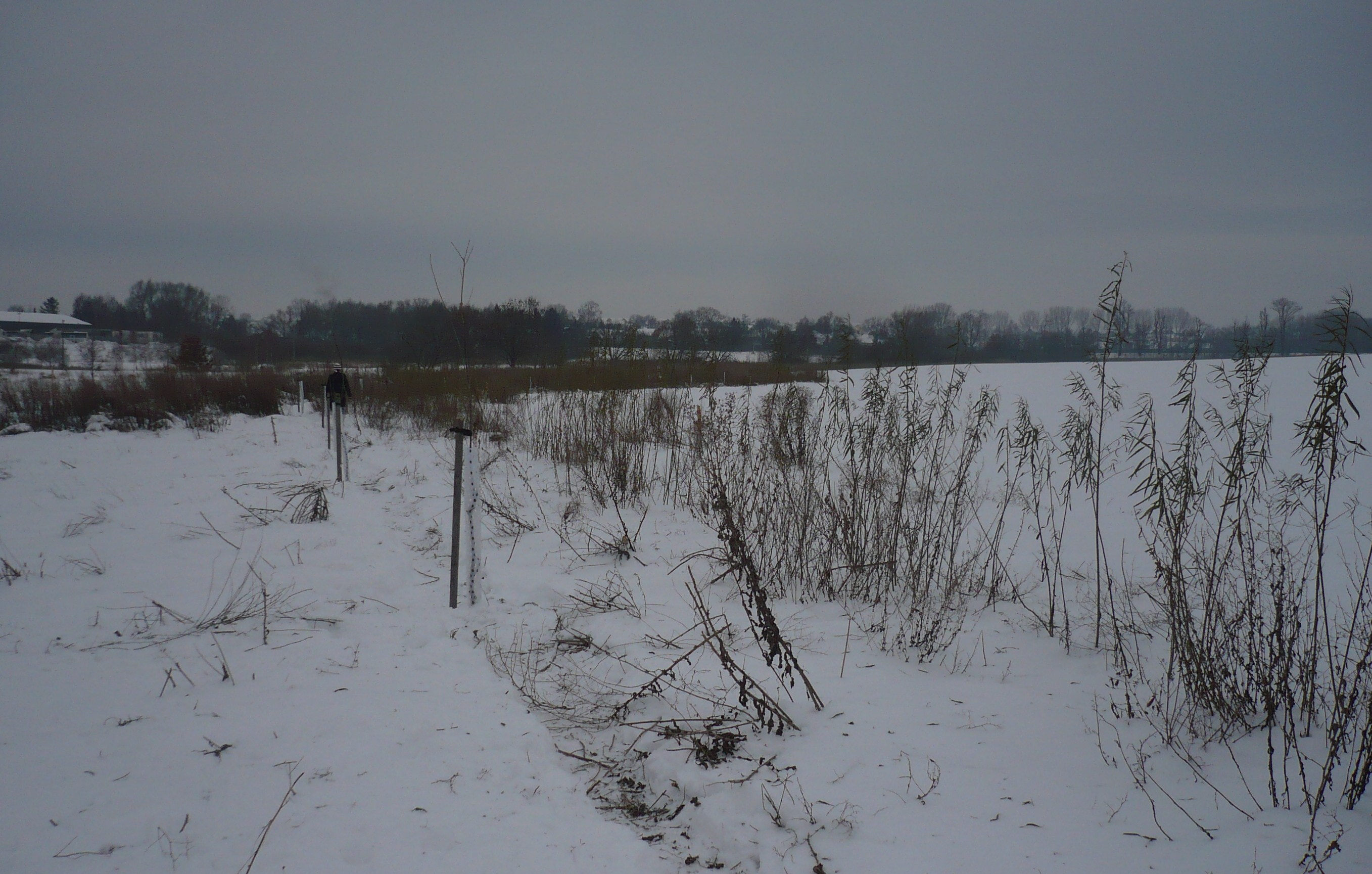 Ty pruty vpravo jsou vrbičky, co jsme sázeli letos v dubnu, v tomto úseku se jim obvzlášť dobře daří a mají výšku přes dva metry. Stromky v levé části fotky jsou duby, co vysadila před týdnem firma Berger Beton (58 ks), termín výsadby teda nebyl nejlépe zvolen, ale firma má o stromy pečovat ještě následující dva roky, a tak nás to snad nemusí trápit...