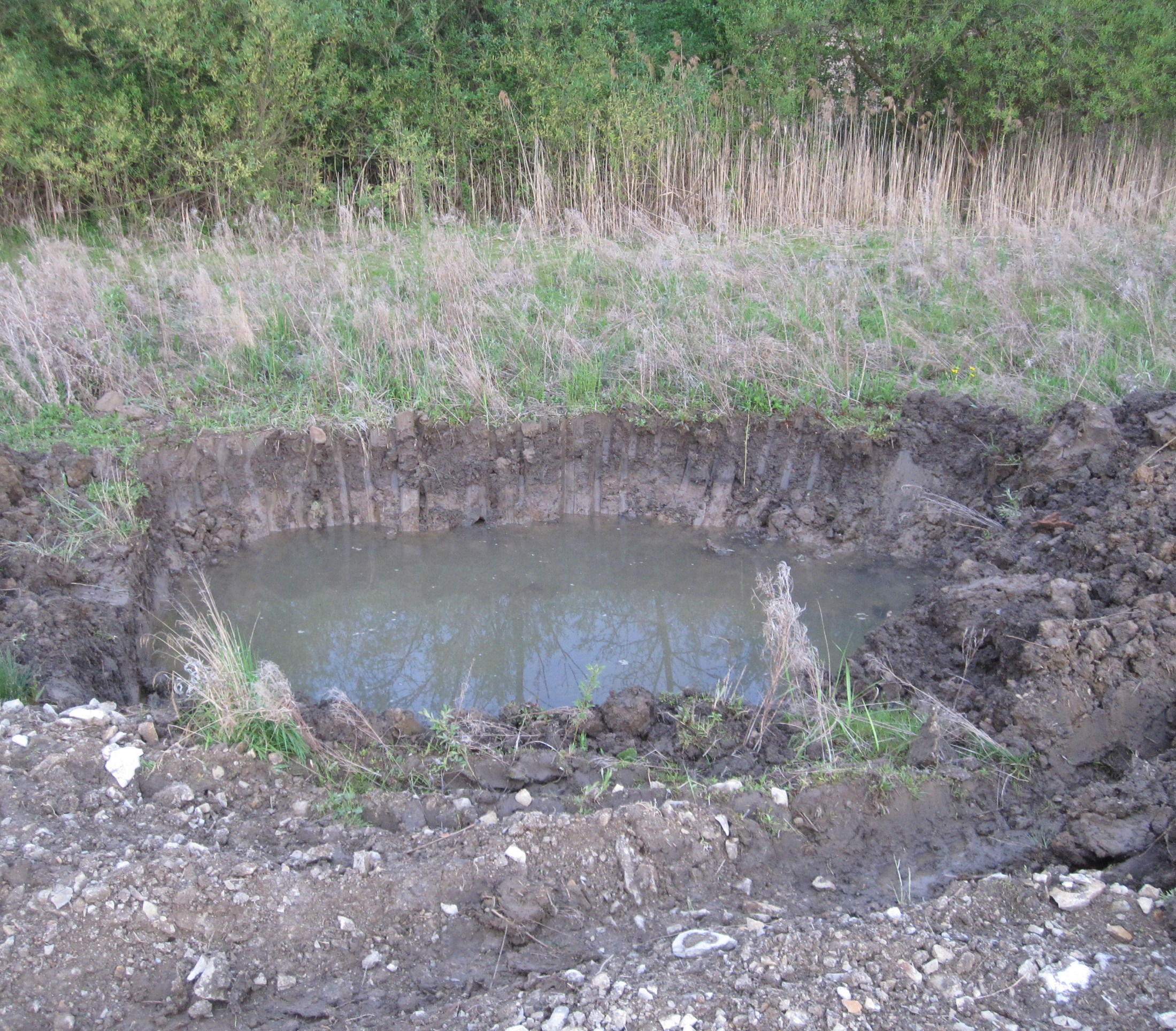 Dnes se v biokoridoru objevil základ pro žabí tůňku, okolí se domodeluje v rámci chystané stavby pěšiny, děkujeme bagristovi