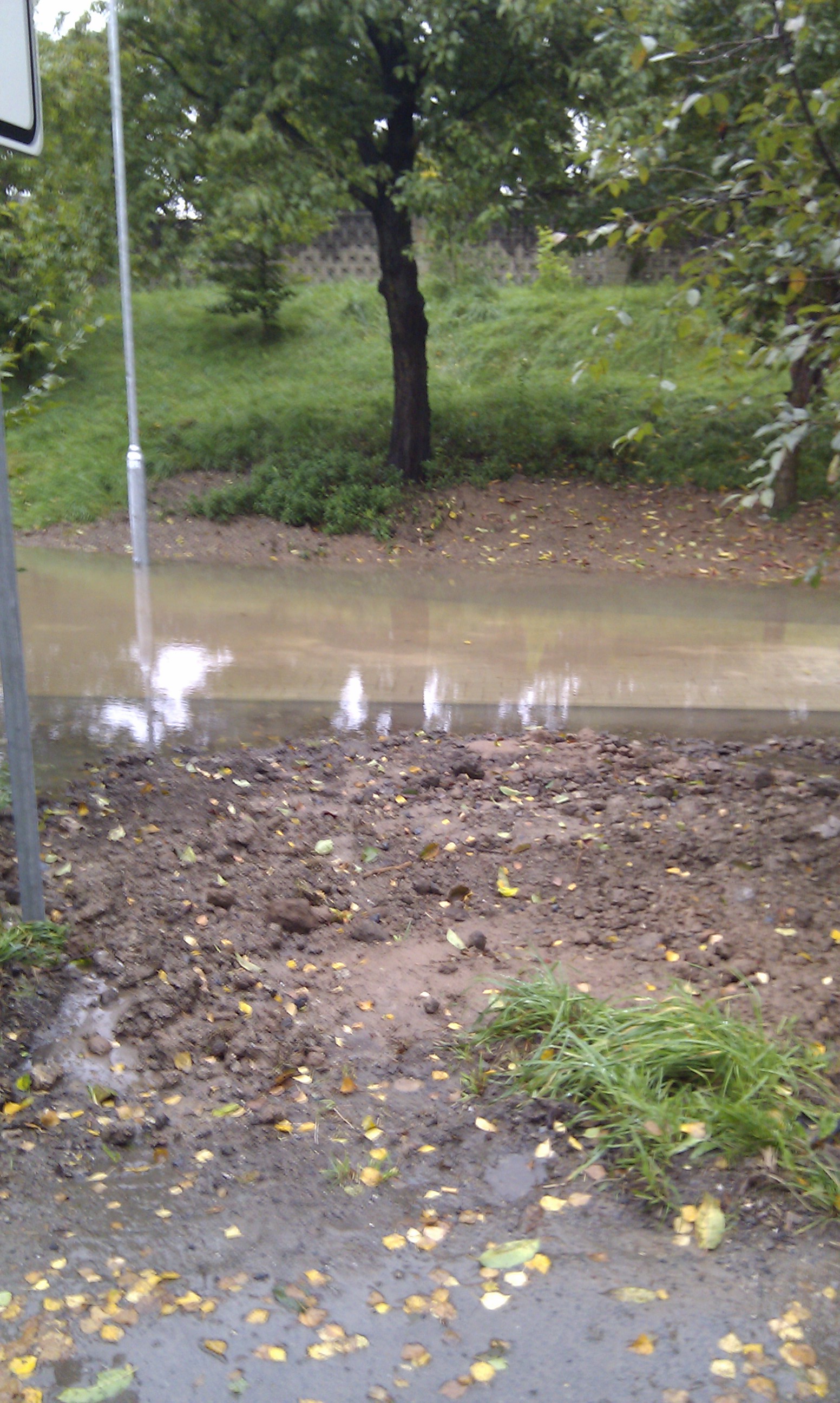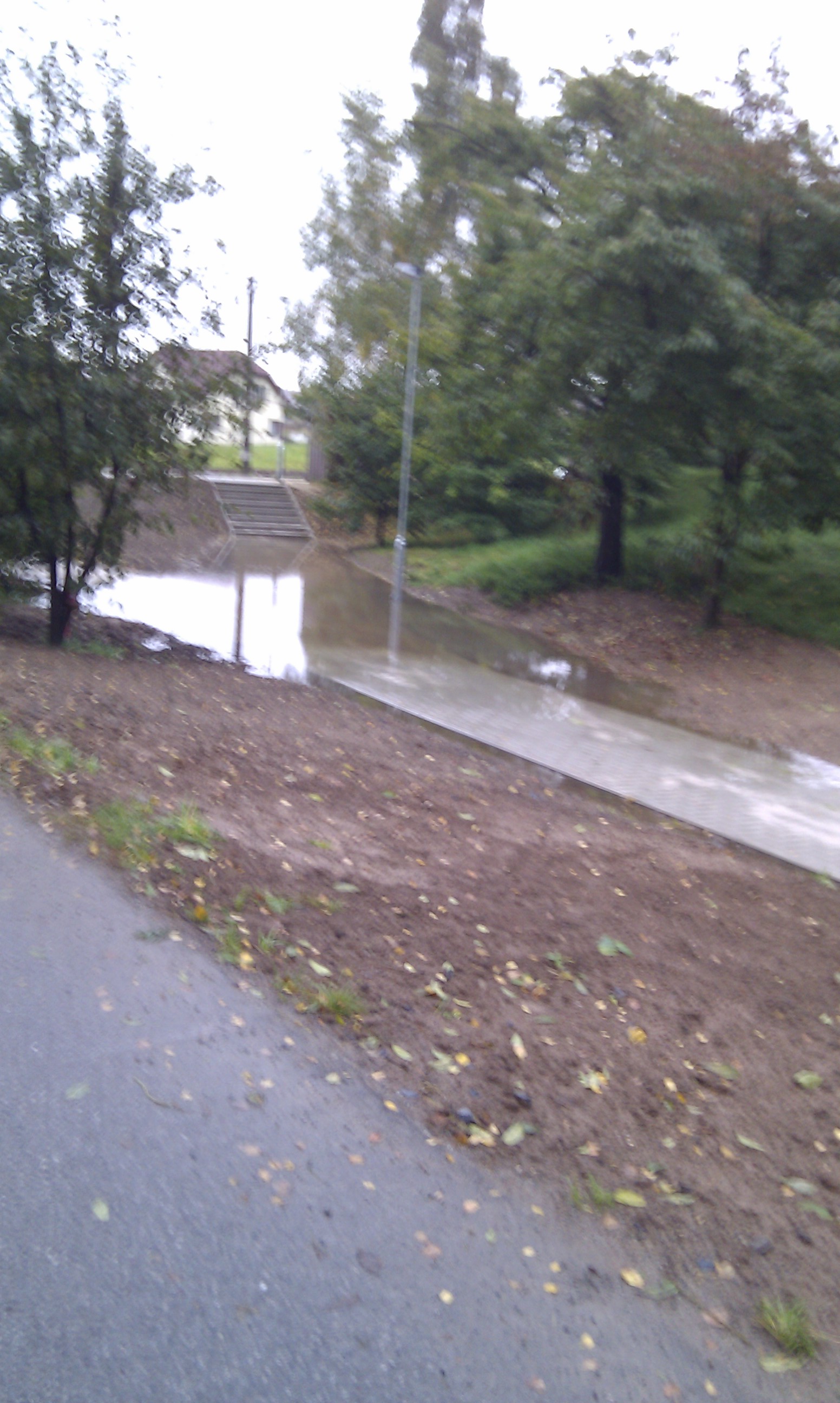 jednak na chodník natekla spíš voda ze silnice, která své odvodnění taky nemá