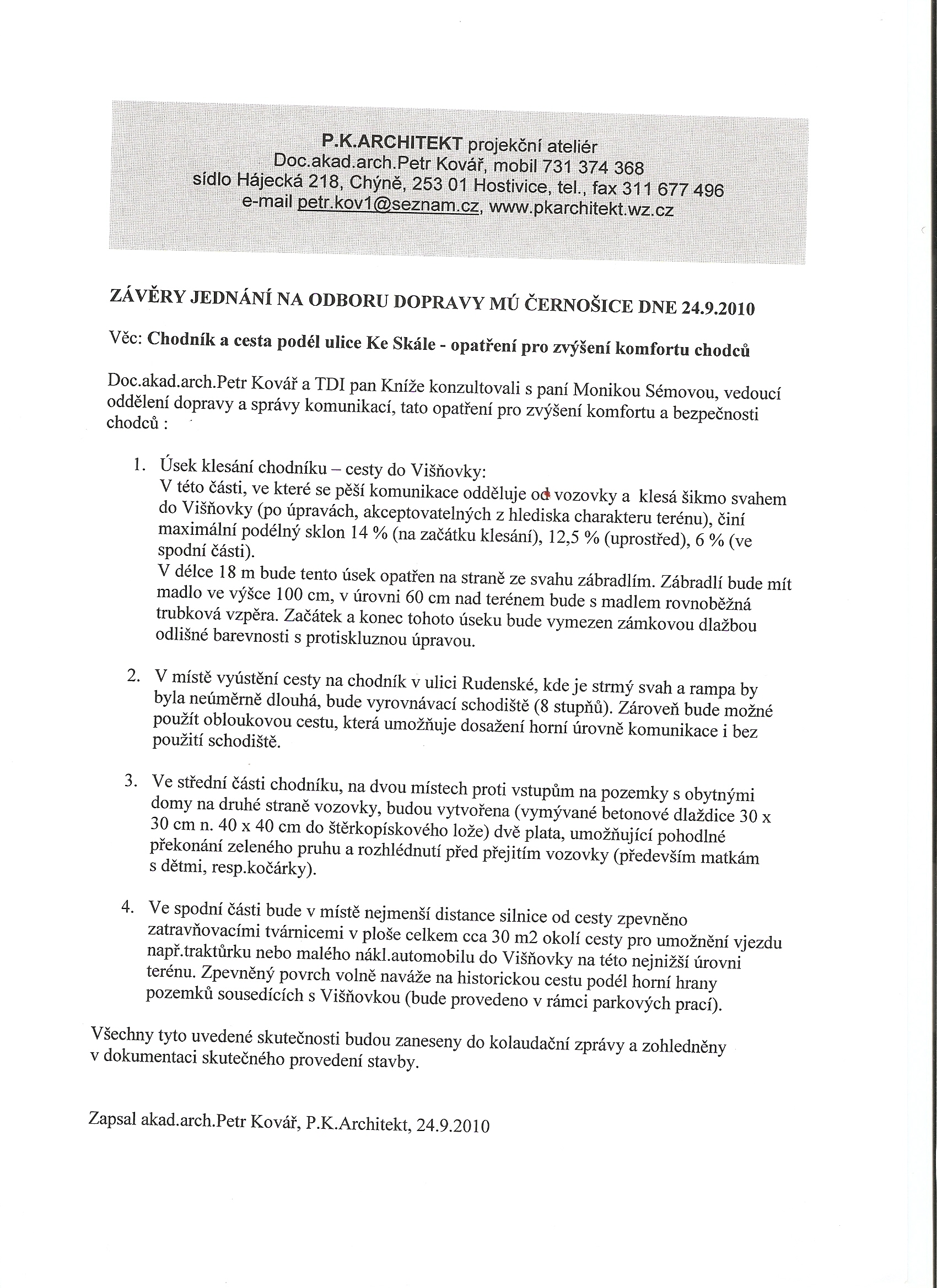 Byl též předložen dokument z jednání na MÚ Černošice (z Černošic ale ještě nepotvrzený) viz příloha.