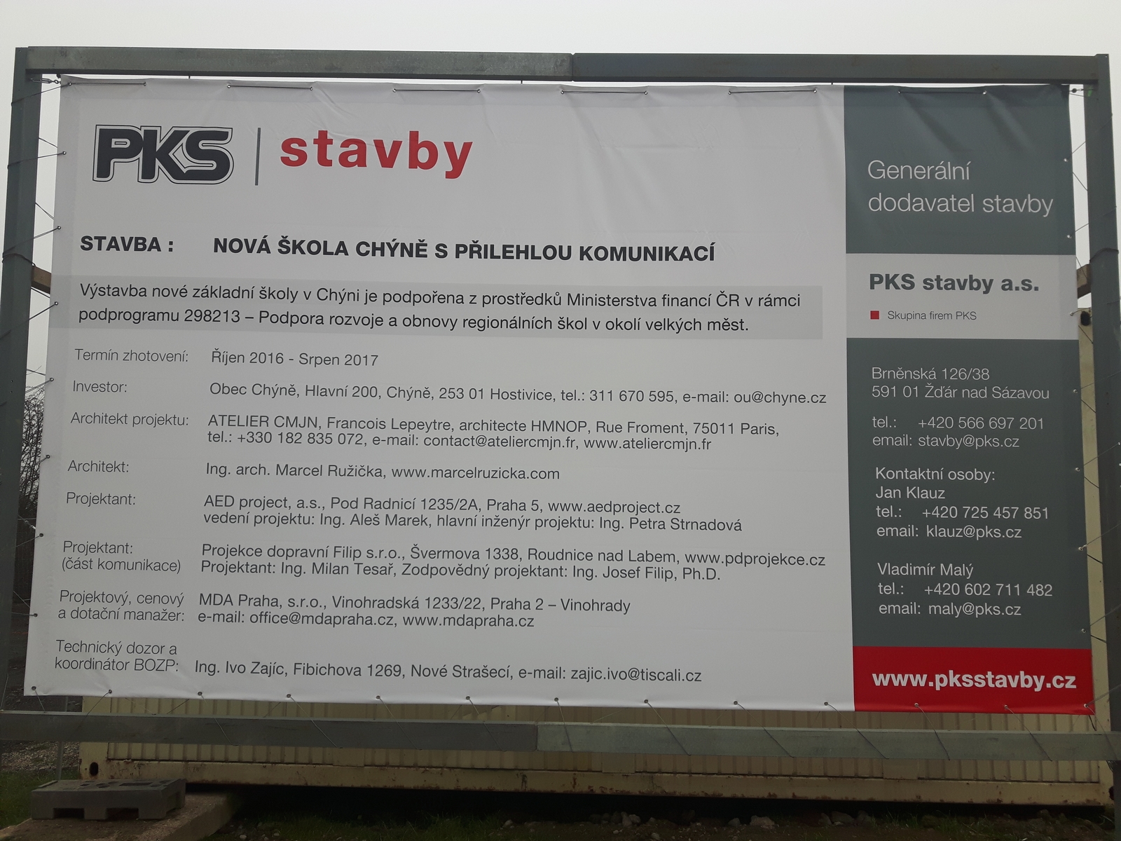 Příprava na vyhlášení architektonické soutěže na stavbu základní školy v Chýni
